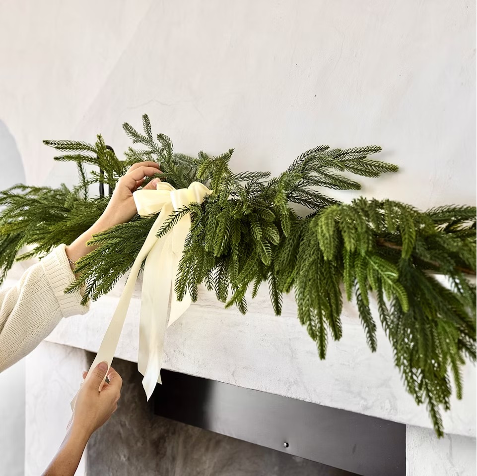 Att renovera skorsten, spis och fläkt är nog så bra men hur sätter man kronan på verket? Jo, genom att lägga en finfin konstgjord grangirlang på spiselhällen. Det blir lyckat, det vill jag lova. På bilden samsas flera girlanger men vi har ett antal i lager för omgående leverans, så det löser sig.